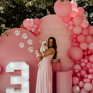 Michelle and Mia share an extraordinary bond, and what better way to honour their special day than with a celebration as unique as their connection? The décor was nothing short of breath-taking—an all-pink wonderland adorned with playful paw prints, soft pastel balloons, and glittering gold accents. Every detail, from the paw-themed backdrop to the custom “Happy Birthday” signage, was a testament to the thought and love poured into this event.