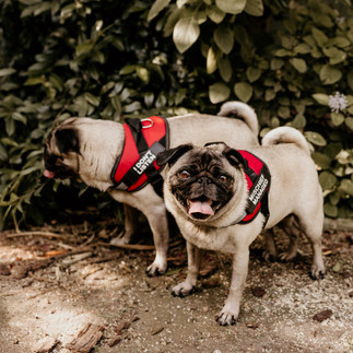 Mowgli and Sage made sure there was never a dull moment. From eagerly sniffing the equipment to giving me those iconic pug expressions, they brought so much joy to the shoot. And of course, the quirky harness sayings added that extra bit of storytelling that every great branding image needs.