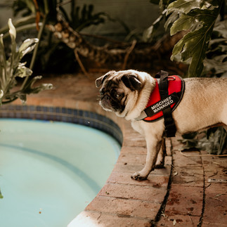 Sage’s harness, on the other hand, read “Mischief Managed,” which couldn’t have been more fitting for a pug with a big personality and curious eyes.